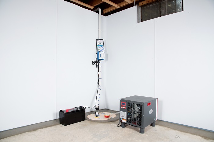 Keep your basement dry all the time. A TripleSafe® Sump Pump System (shown here), combined with a SaniDry® dehumidifier, represents the ultimate in basement waterproofing and humidity control.