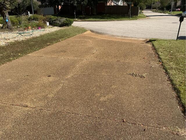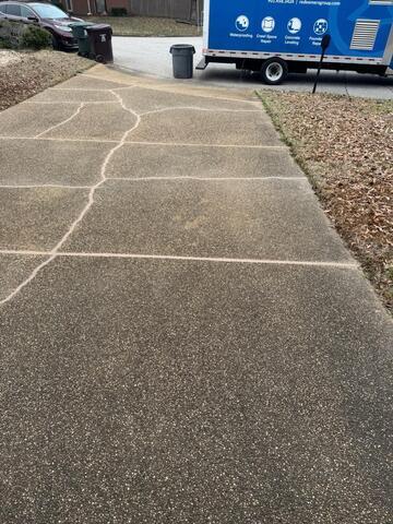 Phyllis O. of Collierville, TN reached out after noticing her driveway apron had sunk nearly an inch near the curb, creating a clear tripping hazard. During inspection, she also expressed concern about her back patio, which had sunk and developed a large crack due to tree-root heave. These uneven surfaces, along with multiple open joints and cracks throughout her driveway, patio, and walkway, were affecting her daily safety and comfort. One crack on the back patio had been filled with caulk by her grandson, but it required proper removal and professional repair to restore long-term stability.