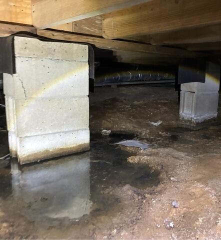 Water Intrusion in Crawlspace Causing Basement Flooding and Structural Settlement