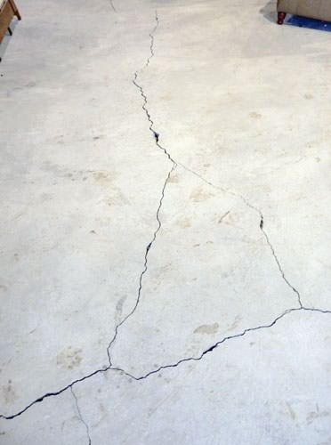Cracks on floor slabs that are caused by foundation heave come together to a point or form an enclosed loop where the heave is greatest.