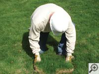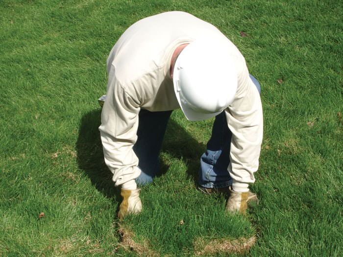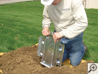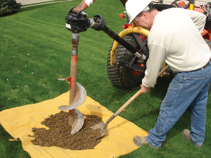 At the beginning of each earth anchor installation, sod is carefully removed from your lawn and placed aside for later. A sheet is laid down to help protect your lawn and landscaping, and an earth anchor hole is made using a power auger.