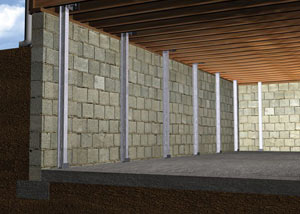 The PowerBrace™ is a patented foundation wall repair system designed to stabilize failing basement walls and also allow for potential straightening over time. This product is a great option when access to the yard outside of the home is not possible and bowing, buckling wall problems need to be solved.