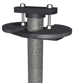 The pier consists of interlocking tubular steel sections. An adjustable bracket connects the top of the pier to the underside of the slab.