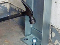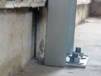 The contractor will now fix each channel anchor's position on the floor by bolting a strong steel bracket to the floor with a pair of heavy-duty bolts.